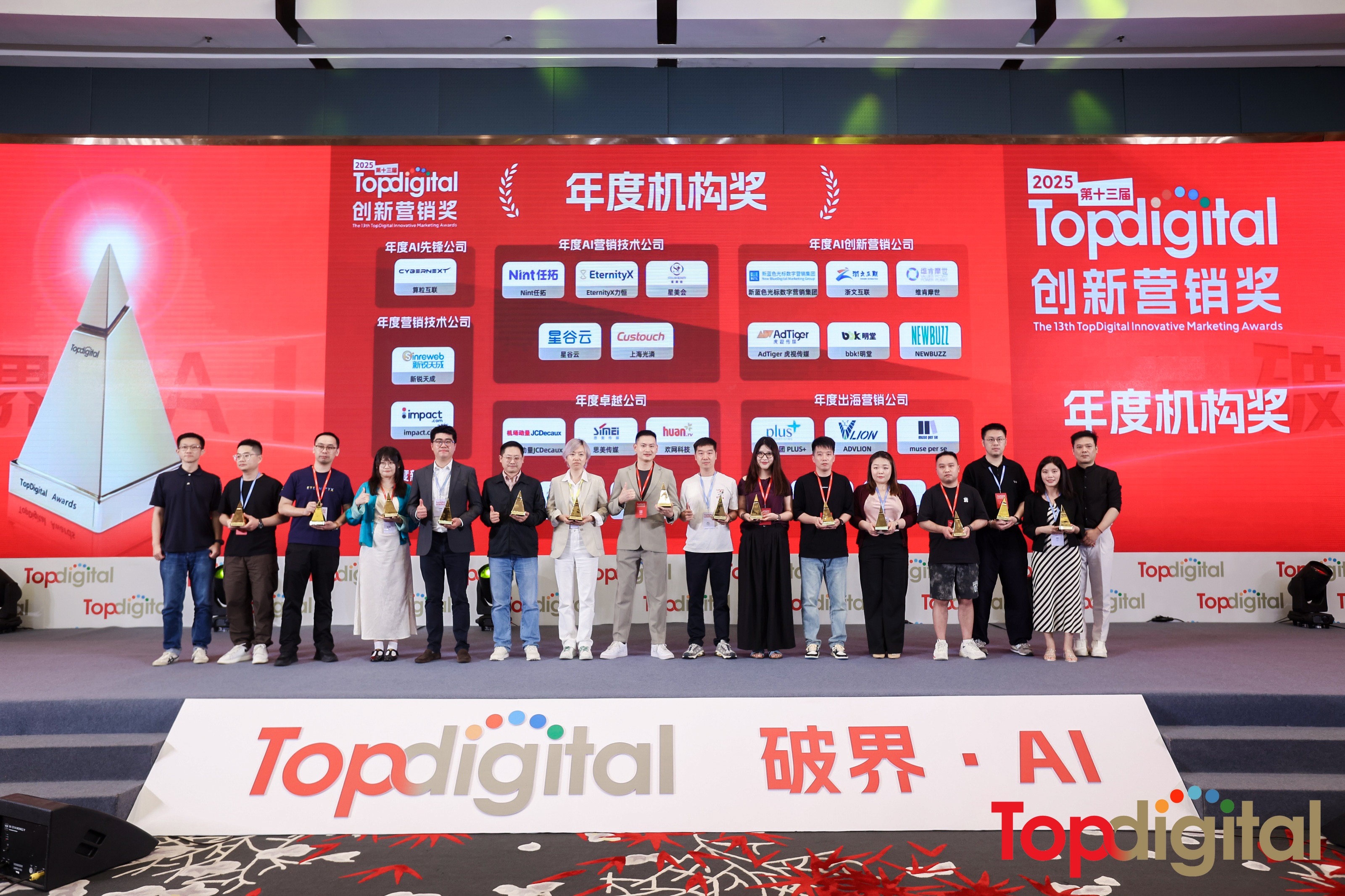 6月27日,以“破界· AI”為年度主題的2025第十三屆TopDigital創(chuàng)新營銷盛典在上海隆重舉行,并揭曉了TopDigital創(chuàng)新營銷獎獲獎結(jié)果。思美傳媒旗下思美文顥團(tuán)隊的“智己‘破爛’展”案例斬獲公關(guān)與活動組別(案例類)金獎;同時,思美傳媒榮獲非案例賽道的年度機(jī)構(gòu)獎(卓越公司)。兩項大獎充分展現(xiàn)了思美傳媒的整體實力與服務(wù)能力。