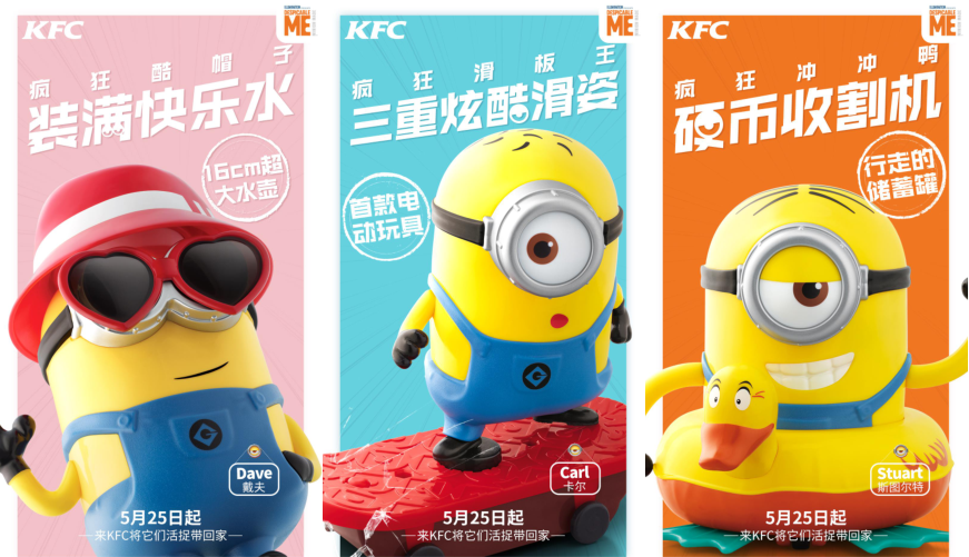 該營銷抓住小黃人賤萌的性格特點,結合六一消費者想過節(jié)的心理,打造成滿足大、小寶寶都愛的六一必備玩具,以此提升KFC六一兒童節(jié)套餐聲量及銷量。最終,三款KFC小黃人定制玩具全國限量165萬份,自5月25日上市,原計劃6月10日售完,六一當天全部售罄,提前完成銷售目標。#和小黃人鬧六一#上5月31日微博熱搜榜,微博話題超 2.1億閱讀;#和小黃人鬧六一#抖音話題總播放量達 12.7億次。