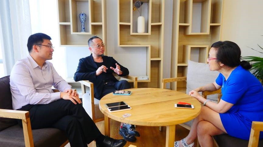 思美傳媒董事長朱明虬、人力總監周益與徐鳳蘭院長交流意見